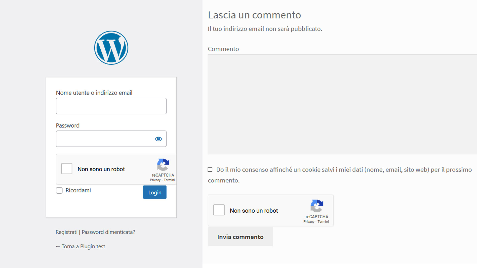In questa sezione potrai abilitare la protezione Captcha offerta da Google ReCaptcha.